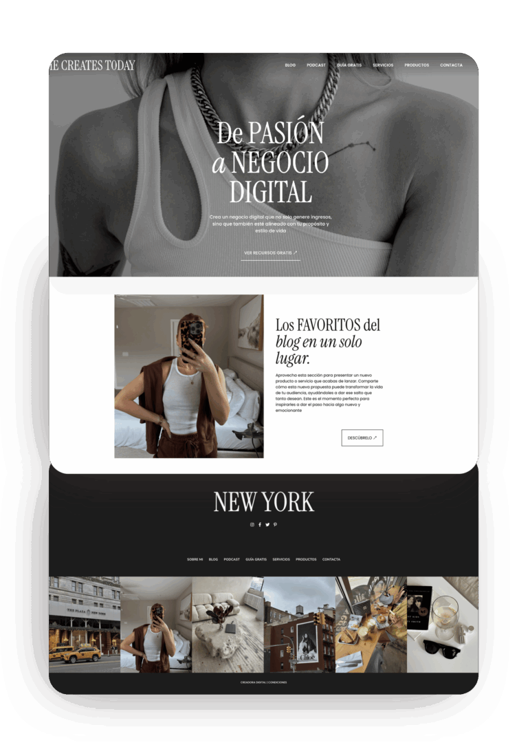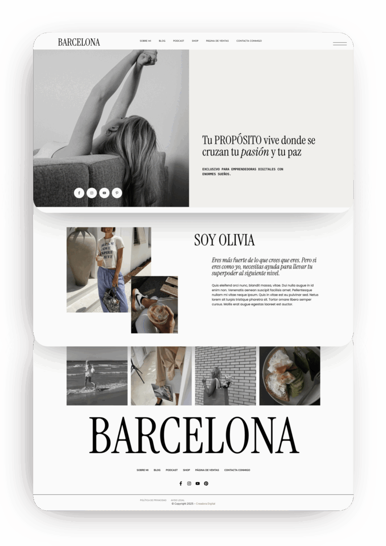 Después de emprender online y crear mi negocio digital (She Creates Today), sé cómo crear páginas web que conviertan visitantes en clientes… y que cuenten con todas las páginas que puedas necesitar.
